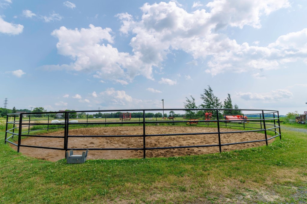 - Manège rond : parfait pour le travail à la longe ou en liberté, favorisant la connexion et la communication avec le cheval.